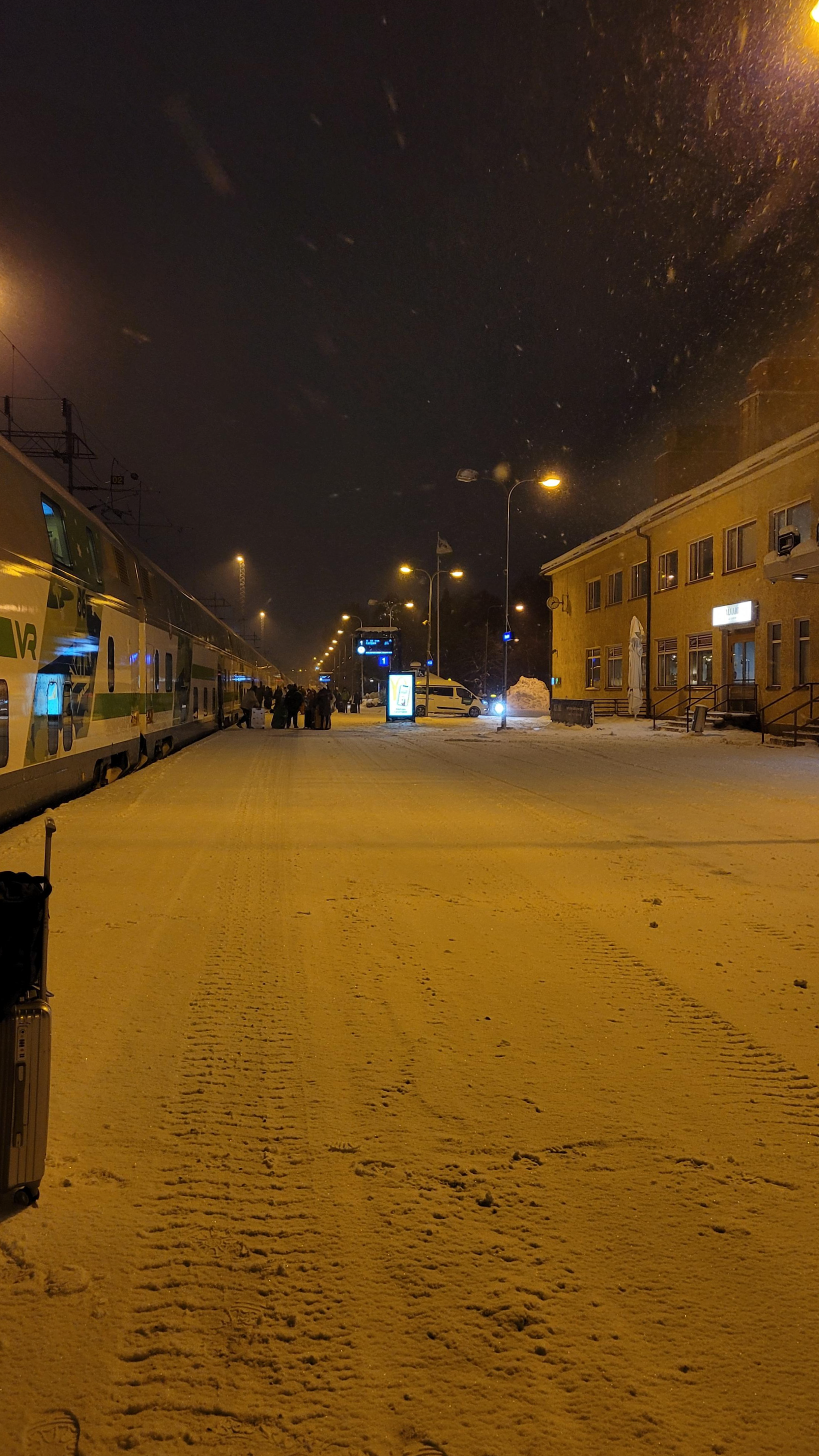 로바니에미에 가기 위해 미리 장을 봐서 VR 밤 열차를 탔다. 굉장히 좁다. 캐리어는 하나씩만 펼 수 있고, 그것도 반밖에 안 펴진다. 화장실도 딱 성인 한 명 겨우 서있을 수 있는 크기. 그래도 마냥 재미있다. 타고 얼마 안 돼서 검표원이 와서 표를 확인한다. 만약 문을 열지 않으면 마스터키로 바로 열어버리는데 그 시간이 굉장히 짧다. 우리는 그걸 몰라서 누군가가 문을 두드리길래 5초 남짓 경계하며 어? 하고 있었는데 갑자기 철컥- 하고 열리는 문에 기절할 뻔했다. 심지어 옷도 나시 한 장 걸치고 있어서 더 놀랐다. 옷 갈아입는 중이었으면 큰일날 뻔.. 티켓 플리즈라고 한마디만 해줬으면 바로 열었을 텐데 아쉽다. 이 글을 읽은 분들은 미리 표 준비해 놓고 옷 입고 있기!
