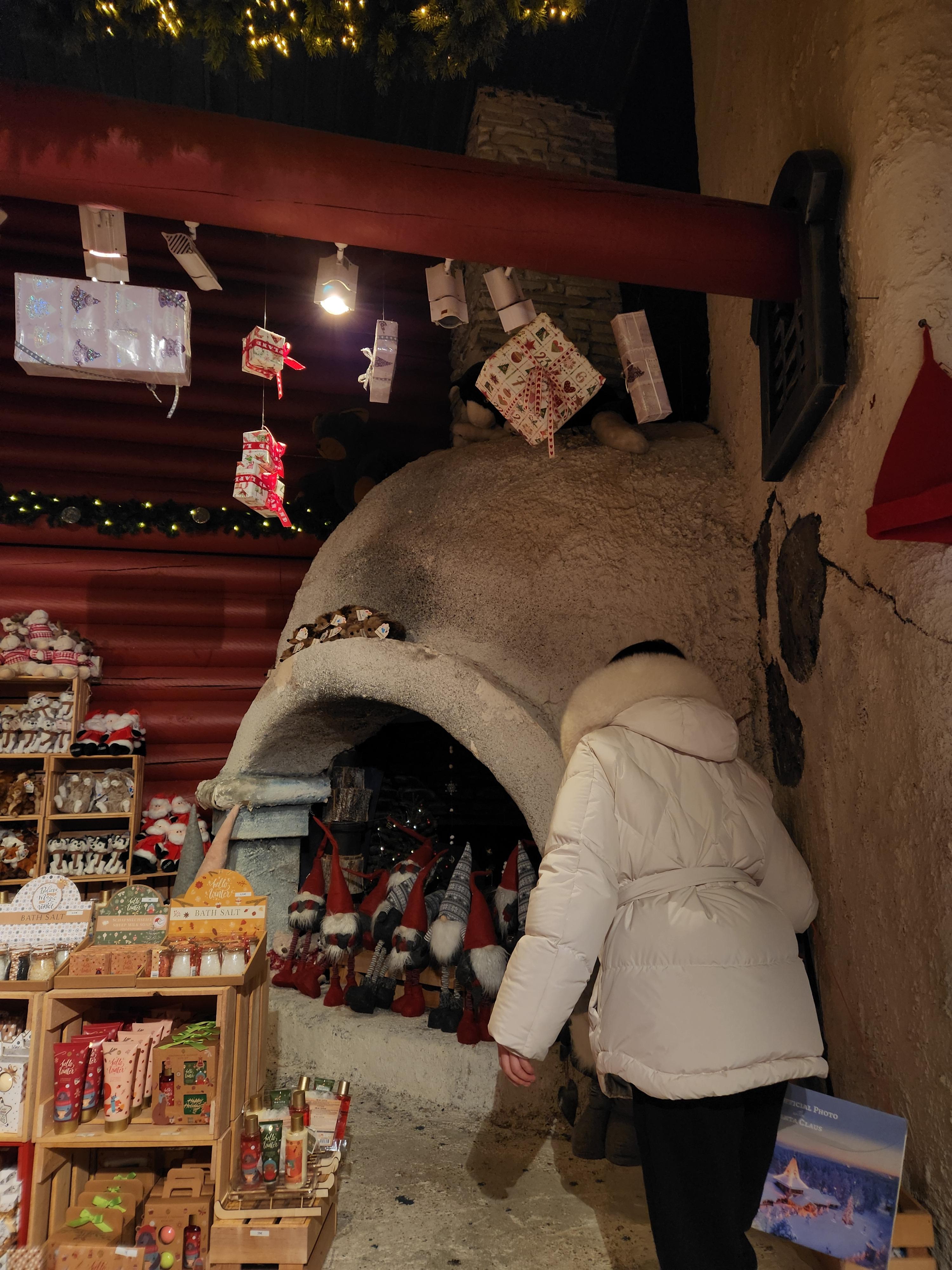 산타랑 사진 찍고 굉장히 기분 좋아져서 나옴. 나와보니 상점들이 다 문을 열었다. 산타 마을에는 구경할 곳이 굉장히 많은데 일반 기념품샵 부터 직접 만든 칼을 파는 곳까지 다양하다. 중간에는 몸을 녹일 겸 카페에 들어가 쉬었다. 다들 막 도착하는 시간이라 그런가 카페도 널널했다.