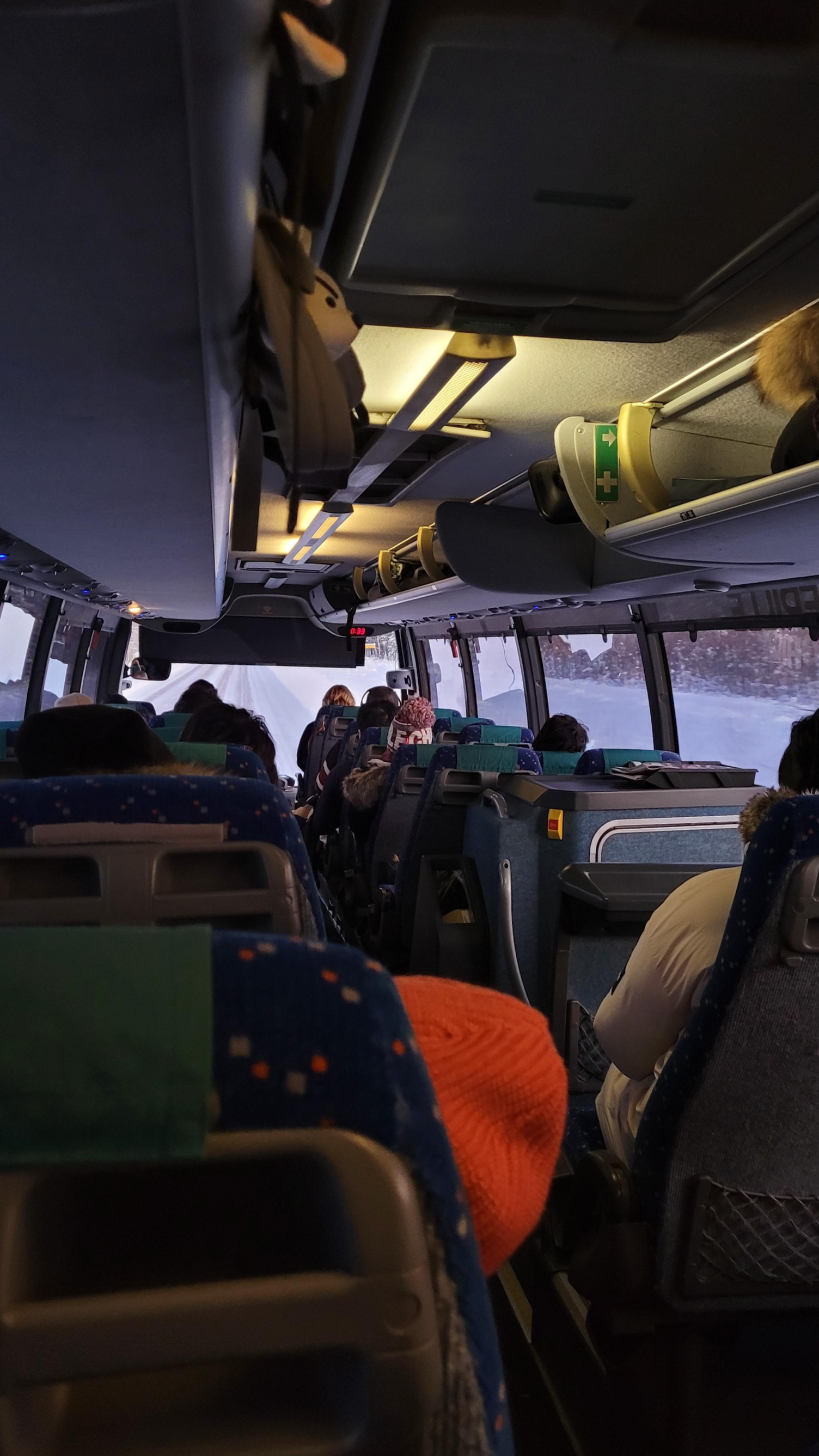 버스를 타고 3시간 반 정도 이동했다. 중간 휴게시간에 허리도 펼 겸 내렸는데 엄청난 일출을 봤다. 노을보다 붉은 일출. 이 포스팅의 사진 모두 보정하나 하지 않는 원본이다. 몸은 힘들지만 바깥 풍경을 구경하면 그래도 시간이 잘 간다. 해가 밝아지며 창밖으로 야생 순록이 뛰어다니는 것도 보고 야생 흰토끼도 봤다. 너무 순식간이라 사진으로 남기지 못한 게 아쉬웠다.