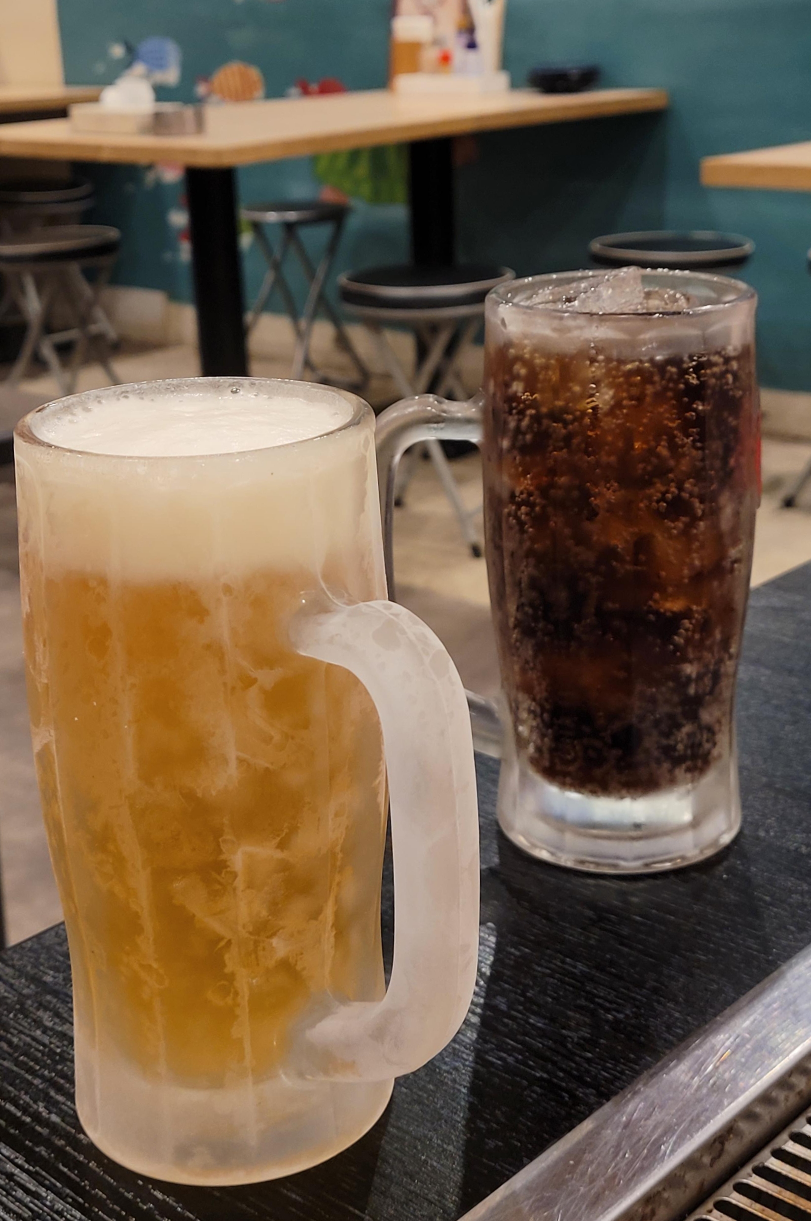 사진만 봐도 시원하지 않나요.. 일본 철판요리와 차가운 유리컵에 담긴 생맥주&콜라 조합은 말 안 해도 다들 알 거다. 날도 덥고 철판도 있어서 살짝 더웠는데 시원한 맥주를 마시니 살 것 같았다.